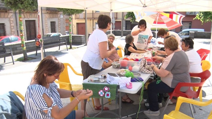 Castellfollit de la Roca va celebrar dissabte el Dia Mundial de Teixir en Públic on els arbres de la Plaça Major van quedar vestits de les creacions fetes a càrrec del grup de teixidores del municipi, que per segon any consecutiu van instal·lar-se al centre de la vila per mostrar la feina feta durant l’any.
