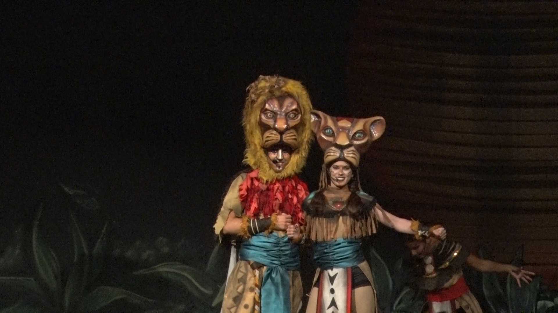 Rafa Chavez, actor de la companyia Onbeat: Somos los maestros de ceremonia que vamos contando un poquito la historia que todo el mundo conoce del Rey León. Pero no solo la historia de la primera película, como sabéis hay varias películas de dibujos animados. Entonces en nuestra historia mezclamos temas musicales de las tres películas. De manera que vamos contando la historia y cantando temas musicales de cada momento. Es un espectáculo familiar donde grandes y pequeños pueden disfrutar.