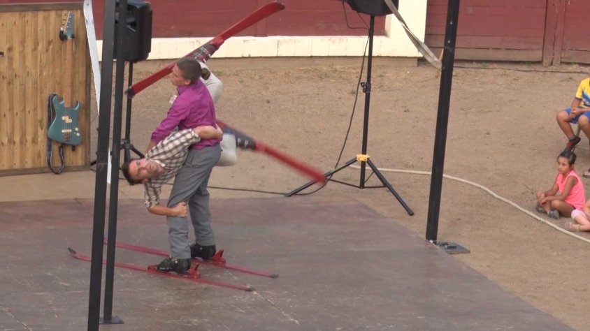 Tena Busquets, Directora Arts Escèniques Olot Cultura: És una companyia de circ francesa, que es caracteritza per tenir un número amb esquís, tot i la calor que fa, serà refrescant. Són àgils, energètics, divertits... un espectacle molt acrobàtic amb molts ingredients perquè passem una bona estona.