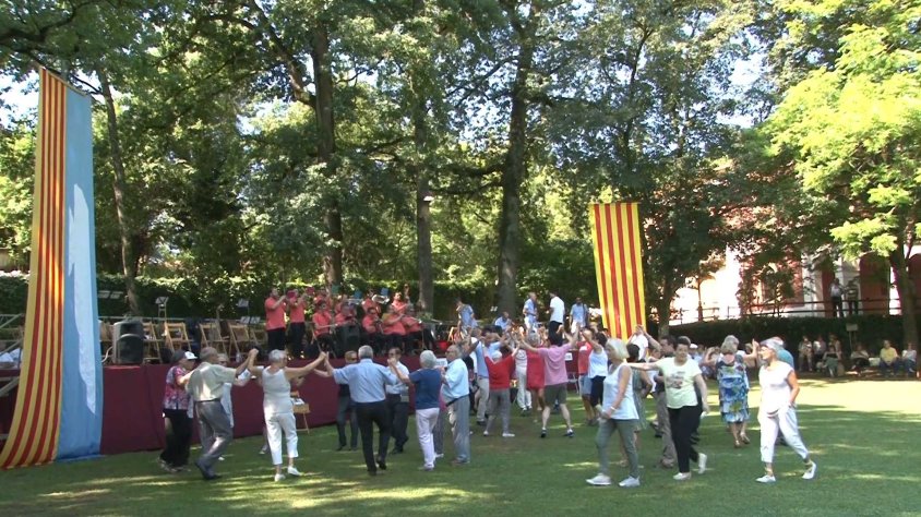 Ignasi Riera, president de l'Agrupació Sardanista d'Olot: Tres cobles, la principal d'Olot, que és la nostra cobla de casa, la Jovenívola de Sabadell i la Principal de Llobregat, que es van intercalant, ara en toca un i després l'altre. Aquest any de les 12 sardanes del matí en dediquem 11 a dones compositores de sardanes.