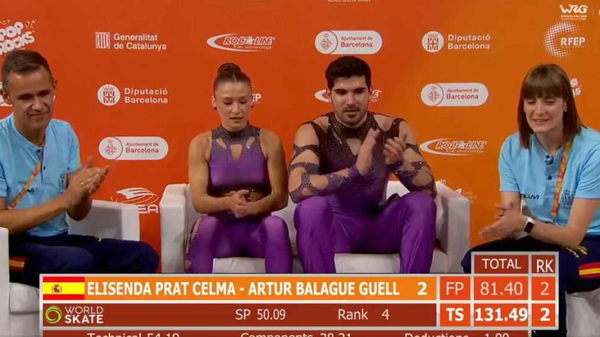 La parella formada per Eli Prat i Artur Balagué, del CPA Olot, han finalitzat aquesta tarda la seva participació als World Roller Games de Barcelona. Ho han fet a la categoria de parelles, en la qual debutaven. El duet olotí ha acabat en quarta posició, després de la suma de puntuacions del programa curt i el programa llarg.