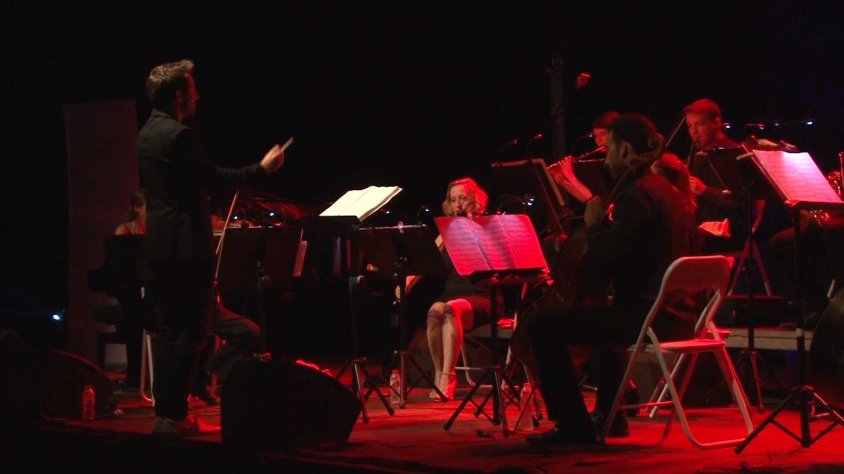 Marc Timón, director GiOrquestra: "A mi em fa personalment molta il·lusió avui fer aquest concert de música de cinema aquí a les Planes d'Hostoles, perquè a la meva vida hi he vingut molt sovint a tocar aquí, però a tocar sardanes amb la cobla els Rossinyolets. Avui vinc amb un registre molt diferent però és una terra que em conec, que jo sóc de Castelló d'Empúries i he vingut molt a festa major aquí. Avui és com tornar a casa d'alguna manera".