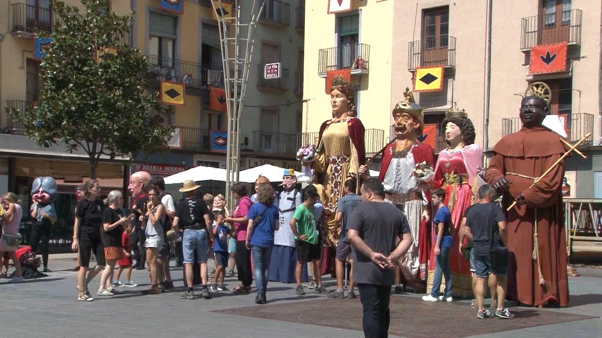 El centre d’Olot ja va començar la seva festa amb una petita ballada dels gegants divendres a la tarda com a novetat d’aquest any. Dissabte, des de primera hora els més menuts han pogut gaudir del tradicional concurs de dibuix. Al migdia però, la cercavila i el ball de gegants han estat els protagonistes.