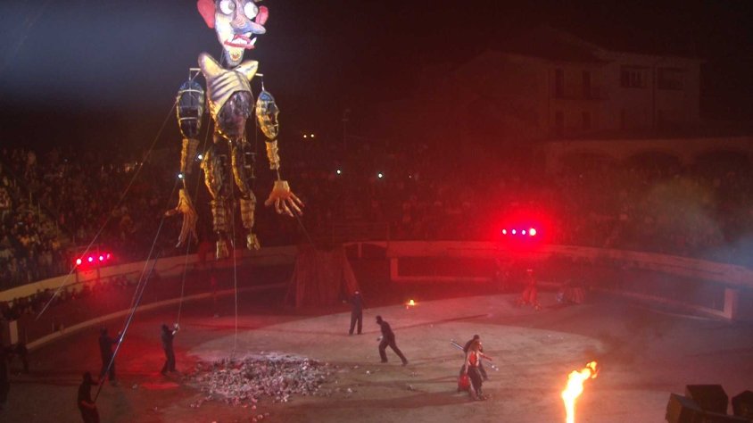 Una lluita espectacular i onírica entre el bé i el mal, en el qual s’han incorporat elements pirotècnics, musicals i de llum, barrejats amb la característica posada en escena de la companyia garrotxina. L’entorn també ajudava, un entorn taurí com l’espectacle que es representava.