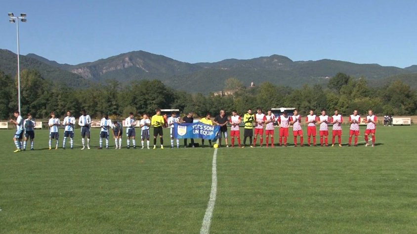 La primera part ha estat indiscutiblement pels visitants, que al minut onze van avançar-se de penal després d’una acció molt discutida pel Joanetes. ha estat Aleix Martí l’encarregat de transformar la pena màxima. Un quart d’hora més tard, al 26, Adrià Andurell anotaria el segon, després d’una errada de la defensa local.