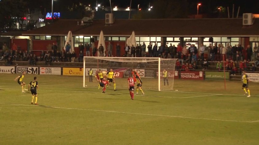 Carles Mas, jugador UE Olot: Fer un gol és motiu d’estar content i més si dona el tres punts. Sabem que a pilota aturada hem d’aprofitar-ho i generar perill.