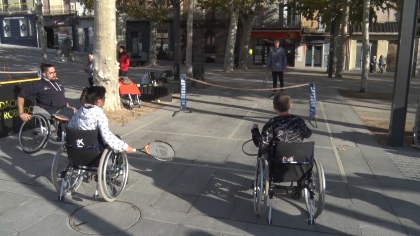 Joan Danés, monitor activitats extraescolars del Patronat Municipal d’Esports: Avui és el Dia Internacional de les Persones amb Discapacitat i hem intentat apropar a tot Olot el que és fer l’esport amb una discapacitat física, concretament avui amb una discapacitat motriu a la part de les cames, i hem preparat el bàsquet i el vòlei adaptat, i el tennis, que ens el preparen des de la Fundació Tommy Robredo.