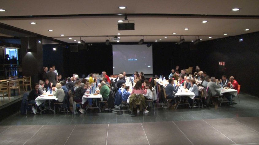 La Sala El Torín es va omplir de més de 100 persones per viure un dinar popular especial. La visita del filial blaugrana sempre augmenta el nombre d’espectadors i, aprofitant-ho, aquesta vegada es va preparar una prèvia diferent amb un àpat entre aficionats de l'Olot i del Barça. La Unió Esportiva Olot, la Grada d’Animació i les dues penyes garrotxines del Barça, els Almogàvers i la Barcelonista d’Olot i Comarca, es van unir per organitzar aquest dinar.