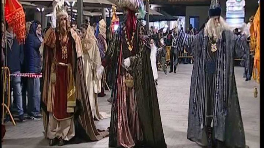 Melcior, Gaspar i Baltasar es passegen pel Firal d'Olot durant la cavalcada