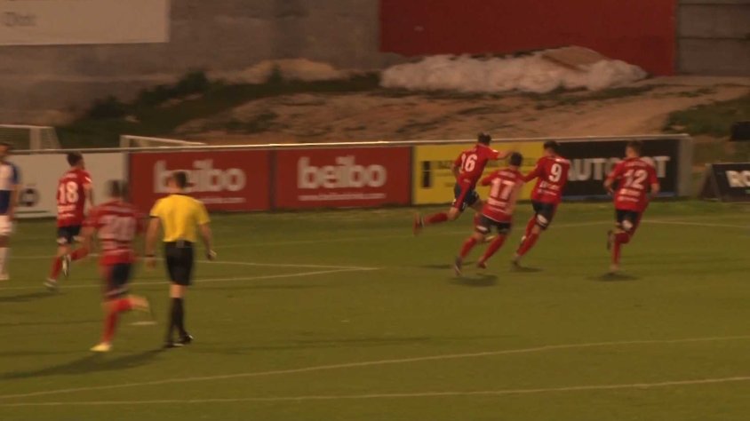 El primer quart d’hora de joc ha estat d’un molt alt nivell, tant pel que fa al joc com per la intensitat. Els dos equips han estat a punt d’avançar-se en el marcador, amb un xut al travesser dels locals i un al pal dels visitants. Els d’Antonio Hidalgo s’han avançat en el marcador al minut 29, gràcies a una diana de Nestor Querol.