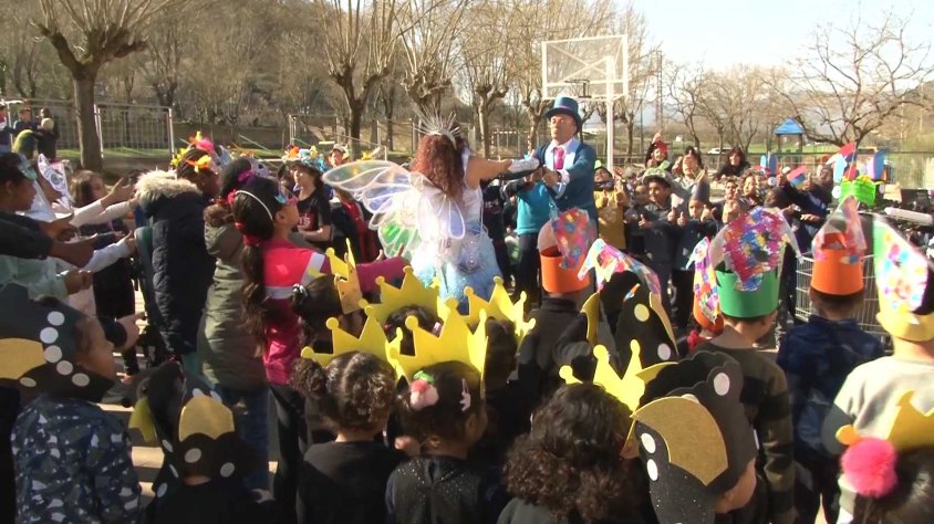 El rei i la reina del Carnaval d'Olot van visitar ahir l'Escola Llar en un dels actes previs a la rua que tindrà lloc demà. El ball, l'alegria i la il·lusió no van faltar a l'esdeveniment, a banda de la novetat de les disfresses d'enguany, on els més menuts han treballat amb materials reciclats per donar forma a la seva imaginació.