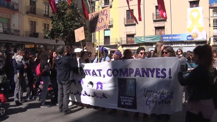 El grup de coordinadores 8M Garrotxa, nascut ara fa un any, han organitzat una manifestació sota el lema ‘Contra l’Estat i el patriarcat, feminisme organitzat’ que arrencarà a 2/4 de 12 del matí des del Firal Petit, passant per la plaça del Mig, el carrer Mulleras i finalitzant a la Plaça Major on tindrà lloc la lectura del manifest i es realitzarà el castell format íntegrament per dones a càrrec de la colla castellera els Xerrics. Des de la organització, afirmen que el fet que enguany recaigui en diumenge i que la UGT i la Intersindical hagin convocat una vaga, afavorirà la presència de més dones a la manifestació.