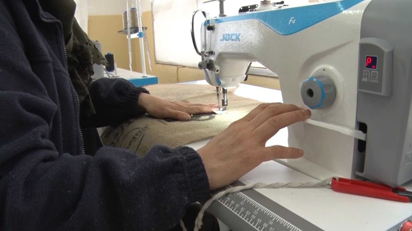 Aquestes bosses fetes de materials reutilitzats i sacs de cafè són el resultat del nou taller de confecció professional que es porta a terme al centre de treball de Càritas Garrotxa. És un dels nous programes laborals que s'ha creat a través de l'empresa d'inserció de l'entitat Ecosol, i dona feina a dues cosidores, la Fadma i l'Ibitsam, i una encarregada.