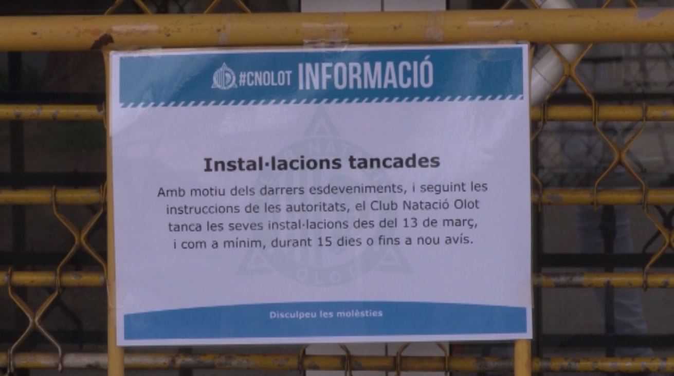 Dins l’allau de suspensions i tancaments a causa del coronavirus, un dels principals equipaments de la ciutat, les instal·lacions del Club Natació Olot romandrà tancat fins a nou avís, tal i com va informar el club en un comunicat divendres, seguint les indicacions del govern de Catalunya i les instruccions de la Secretaria General de l’Esport i l’Activitat Física i el Departament de Salut de la Generalitat de Catalunya.