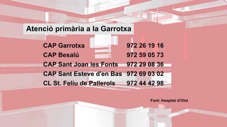 I per aquelles persones que necessitin l’atenció primària a la Garrotxa, l’Hospital d’Olot ha donat a conèixer els centres on s’ofereix el servei.