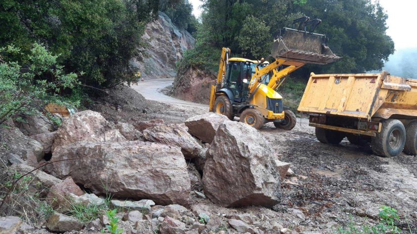 L’empresa garrotxina també ha intervingut aquesta tarda a la carretera C-153a que comunica la Vall de Bianya amb Sant Pau de Segúries. Aquesta via ha tornat a patir esllavissades per l’episodi de precipitacions de les últimes hores.