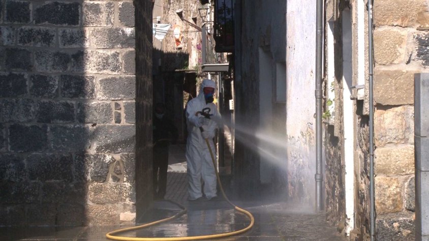 Després de Castellfollit de la Roca, els operaris han marxat a Montagut i Oix, on fins a les 2 de la tarda han estat desinfectant els carrers d’aquest altre poble garrotxí.