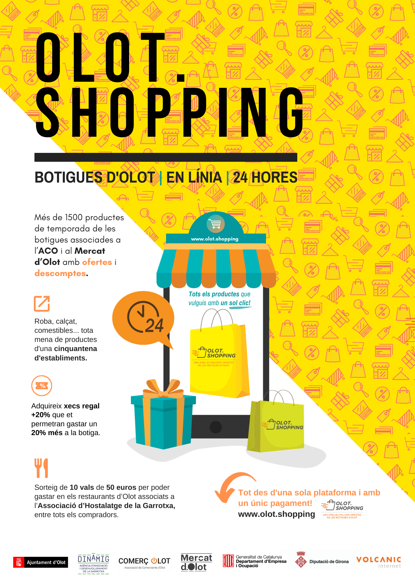 L'Associació de Comerciants d'Olot va tancar aquest dissabte a les vuit del vespre la primera edició de l'Olot.Shopping. La iniciativa és pionera, on els botiguers de la ciutat feien una jornada de venda online durant 24 hores en una plataforma virtual única. S'ofertaven prop de 1.500 productes de gairebé 50 comerços olotins, amb descomptes per als compradors. A l'espera d'una valoració del sector, més de 6.500 persones van entrar a l'Olot.Shopping, per interessar-se pels productes, i de mitjana van estar vuit minuts i mig visitant el portal.