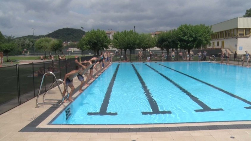 Amb una capacitat màxima de setanta persones dins la piscina exterior, els participants es van llançar a l'aigua mantenint la distància de seguretat.