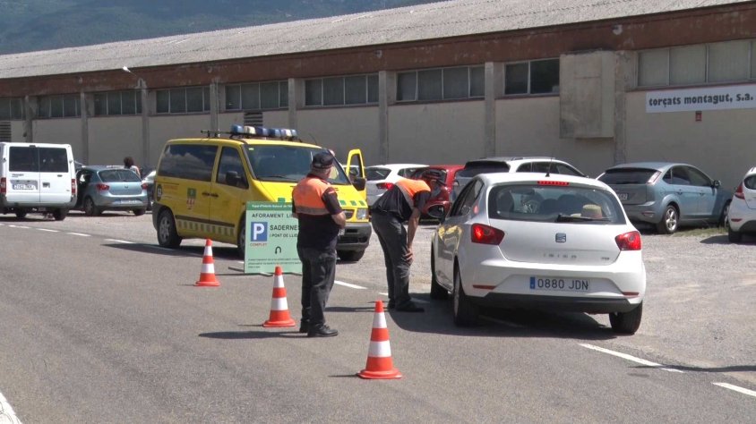 Les noves mesures de control de l’accés de Sadernes començaven aquest cap de setmana a l’encreuament de Montagut i Oix. Protecció Civil col·laborava amb els informadors per evitar vehicles no autoritzats quan ja no hi havia aparcament permès al sector.
