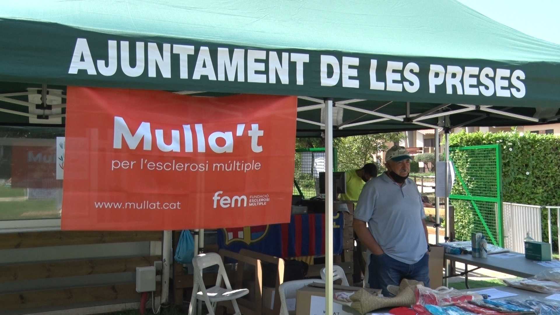 Lluís Xancó, regidor de cultura de l'Ajuntament de Les Preses: Aquest any ha sigut una mica diferent, perquè hi ha hagut el tema de la covid. Vam fer-ho primer el mateix dia, que és el dia del 'Mulla't, que és el 12, vam posar-ho una mica per la gent que volgués col·laborar. Però ara hem fet aquesta ja més presencial. L'hem fet el dia que ens ha semblat que podia haver-hi més gent. Ja tenim els productes i així la gent pot col·laborar.