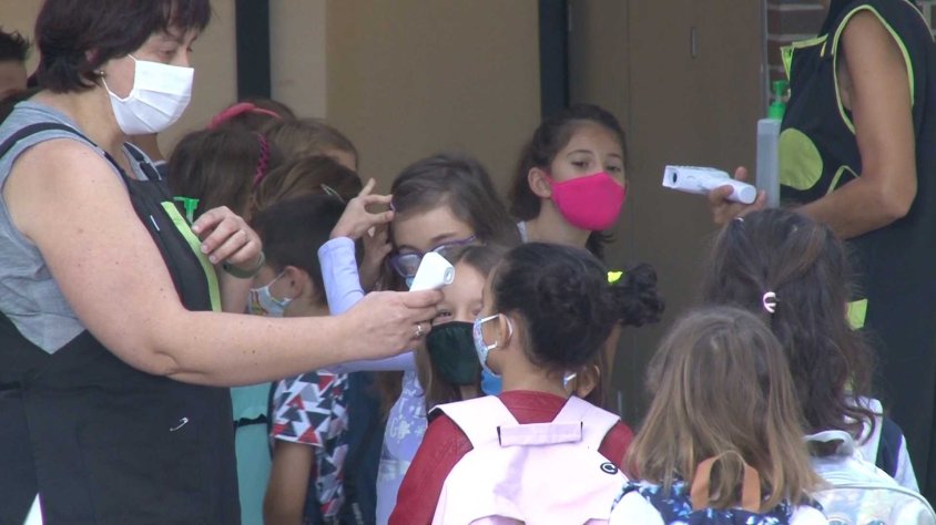 A l’escola La Bòbila de Les Preses, per exemple, la pandèmia ha motivat que els accessos al centre s’hagin de fer per torns i en diferents entrades, a accedir al centre amb mascaretes i a desinfectar i ventilar constantment els espais. A l’entrada, una filera de nens i nenes esperen el seu torn per rentar les mans amb el gel hidroalcohòlic i per prendre’s la temperatura.