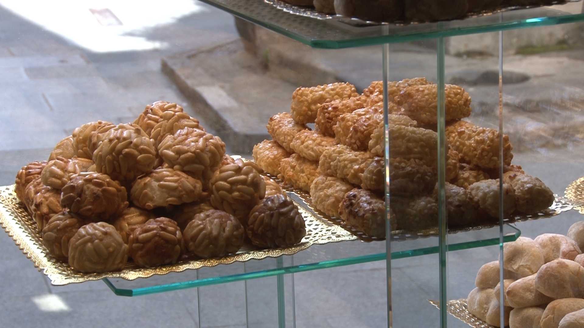 Els panellets ja llueixen als aparadors de les fleques i pastisseries garrotxines. És l'època d'aquests pastissos i, com en tots els sectors, la seva producció i venda es veurà afectada, en menor o major mesura, per les darreres restriccions sanitàries. A la pastisseria Ferrer d'Olot, per exemple, no han treballat amb produccions excessivament grans, com feien en anys anteriors, i són enguany més previnguts.