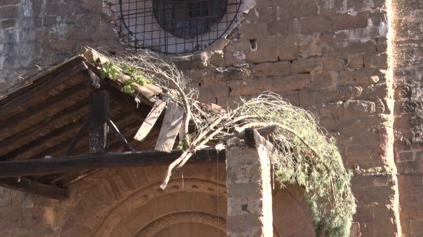 Sant Joan les Fonts va viure dimecres un nou acte incívic al municipi. Un arbre, que estava tallat per la base, va caure sobre el monestir i va malmetre una part del porxo. Els veïns del poble es mostren molt preocupats i demanen que es posin a disposició els mitjans corresponents per aturar aquests actes.
