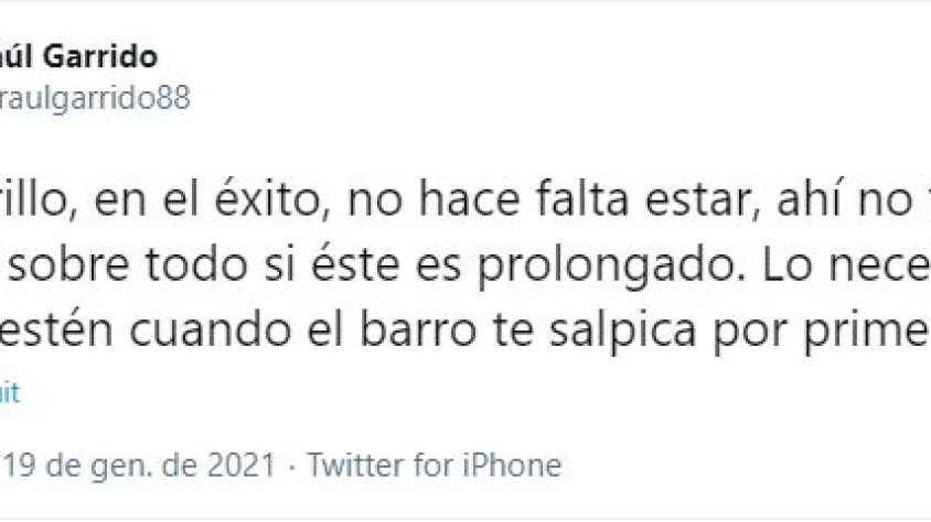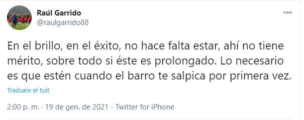 Membres de la junta directiva del club es va quedar parlant després del partit contra el Cornellà, mentre el tècnic valencià atenia els mitjans. Dilluns, Raúl Garrido va publicar aquest tuit.