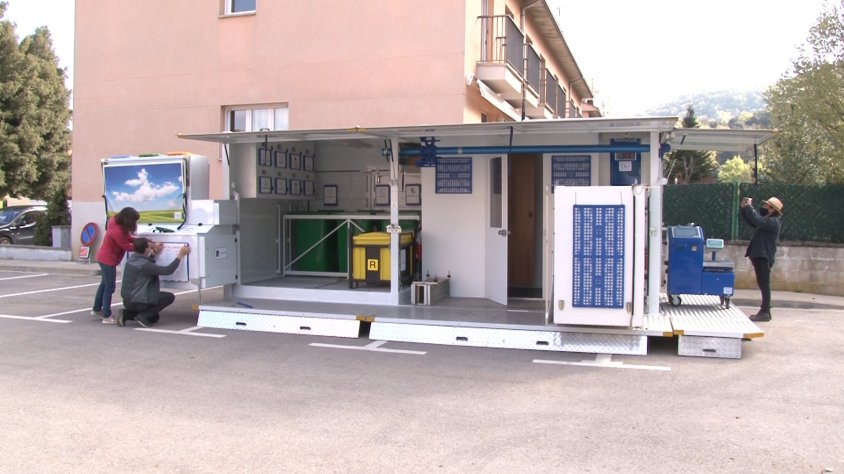 Aquesta deixalleria mòbil, a més, funciona energèticament de forma autosuficient gràcies a les plaques solars que du al sostre i porta incorporada una oficina i un lavabo, ja que una altra novetat que presenta el nou contenidor és la incorporació d’una zona d’atenció ciutadana, que comptarà permanentment amb un professional que assessorarà als ciutadans en la millora de la gestió de residus i en l’ús de la instal·lació.