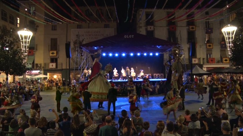 Aquest moment, acompanyat de la pancarta ''Gràcies a vosaltres som aquí" ha obert l'acte de bateig d'un nou gegant de la faràndula d'Olot, en Tim, que ha tingut dos padrins d'excepció: El Porc i el Xai de l'AOAPIX i en Clam de la Penya Blauagrana Almogàvers Garrotxins.