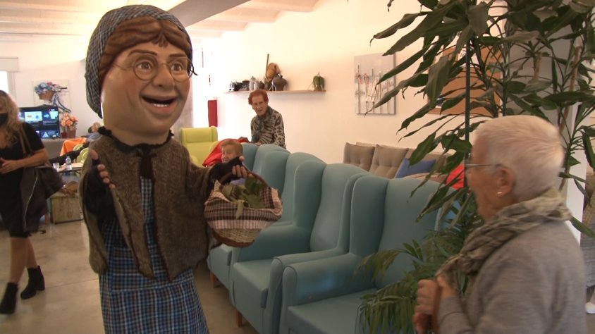 És tardor a la Tardor. La Castanyera ho sap i els va fer una visita als residents, que es van posar així de contents quan van veure aparèixer a casa seva aquesta nova figura de la faràndula que ha arribat per quedar-se de la mà del Centre d'Iniciatives Turístiques d'Olot.