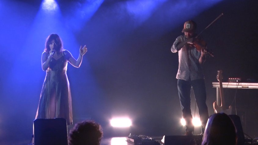 Sobre l’escenari, Clara Poch i Marçal Calvet, dos artistes que ja havien visitat la capital de la Garrotxa amb els seus espectacles de circ i que ahir presentaven el seu àlbum ‘Forutna’, un repertori de música d’autor diversa que es resisteixen a classificar sota una etiqueta.