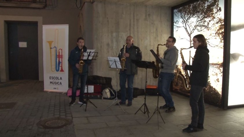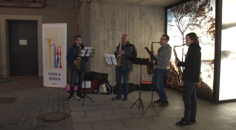 Un exemple es va poder veure la tarda d’aquest dimarts al carrer Sant Rafel. Un quartet de saxos de l’Escola de Música va interpretar diferents peces, davant la curiosa i atenta mirada de persones que s’aplegaven al voltant seu tot fent un cercle. Una altra manera de viure al Nadal, però a la vegada, de donar-se a conèixer i oferir al públic, les hores i hores d’assaig que fan tots els estudiants de l’escola de Música.