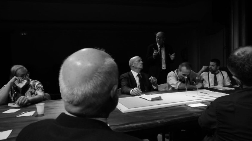 A la magistral obra teatral ‘12 Angry Men’ escrita per Reginald Rose als Estats Units dels anys 50, dotze membres d’un jurat popular s’asseuen al voltant d’una taula de deliberació on han de decidir sobre la culpabilitat d’un jove d’un barri marginal que s’enfronta a la pena capital.