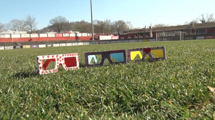 Nuri Fité, àrea social i membre junta UE Olot:I el que volem és omplir el camp i que totes les persones que vinguin a la mitja part es posin les ulleres, es facin una foto i fem una crida massiva per aquesta causa.