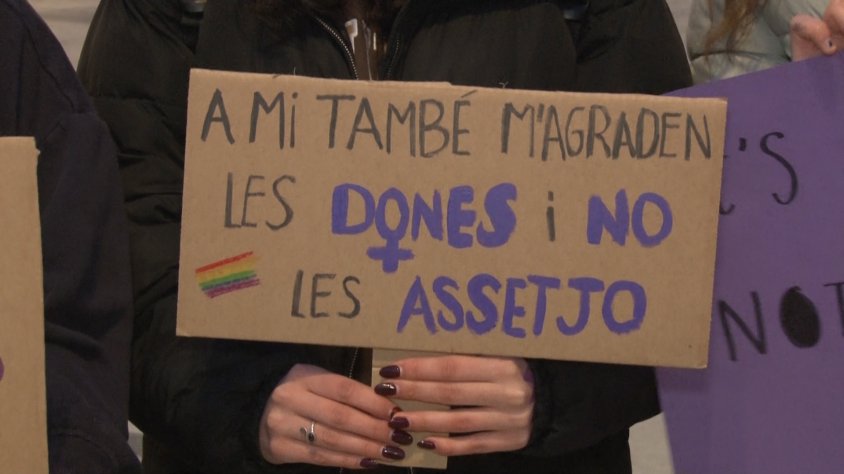Marta Prieto: "Nosaltres hem fet aquesta pancarta, perquè també ens agraden les dones i no les assetgem. És una crítica als homes, perquè normalment són homes, que assetgen altres dones, perquè els agraden o les segueixen pel carrer, simplement perquè són dones."