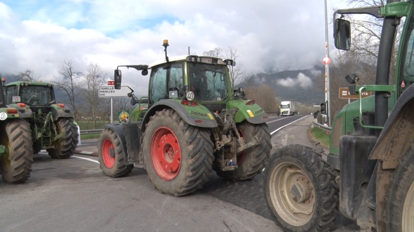 La pagesia garrotxina talla els accessos a Bracons en una protesta amb molt seguiment