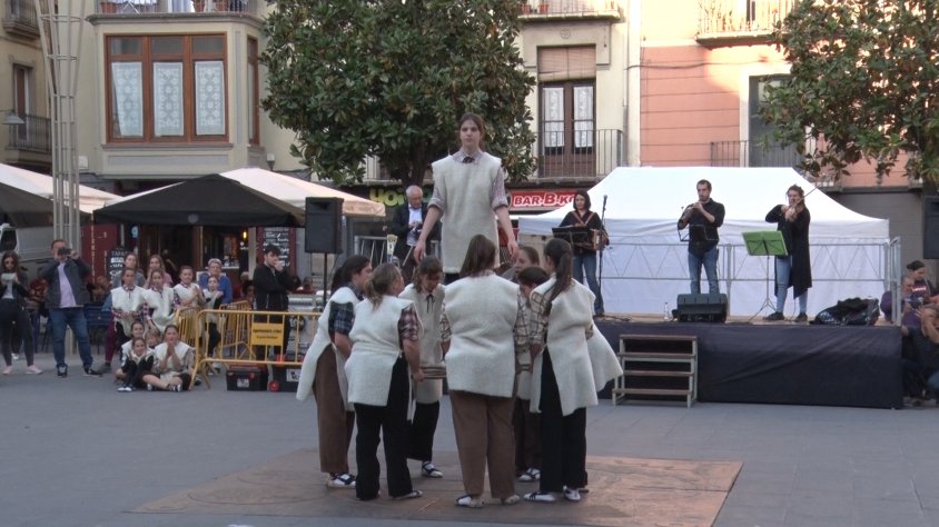 Àlvar Borrell, director de l'Esbart Olot: "Hem pogut fer la part de cercavila. Hem començat des del carrer de Sant Rafel. Hem anat pujant fent un tros de coreografia nova acompanyats d'un flaviolaire. Això no ho havíem fet en cap edició fins ara i ho anàvem repetint des del 2007. Aquest tros el feien tradicionalment els bastoners, però aquest any que no han pogut venir, ho hem suplert amb aquest tros de coreografia."