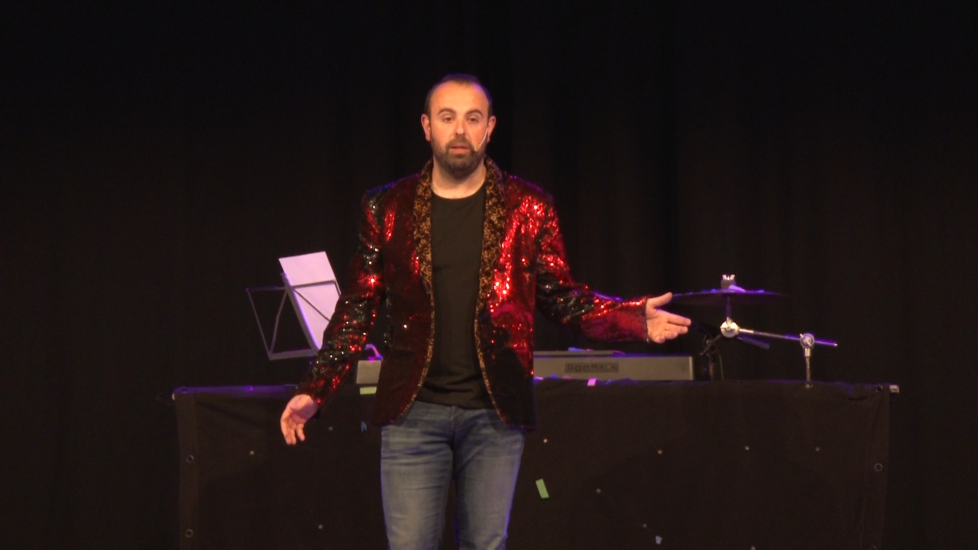 Peyu, humorista: "És la segona vegada que venim a Montagut. He vist que heu arreglat el local. Molt content. Comença l'època de festes majors i 'L'Home Orquestra' és un espectacle ideat i pensat per fer festes majors i és ideal."