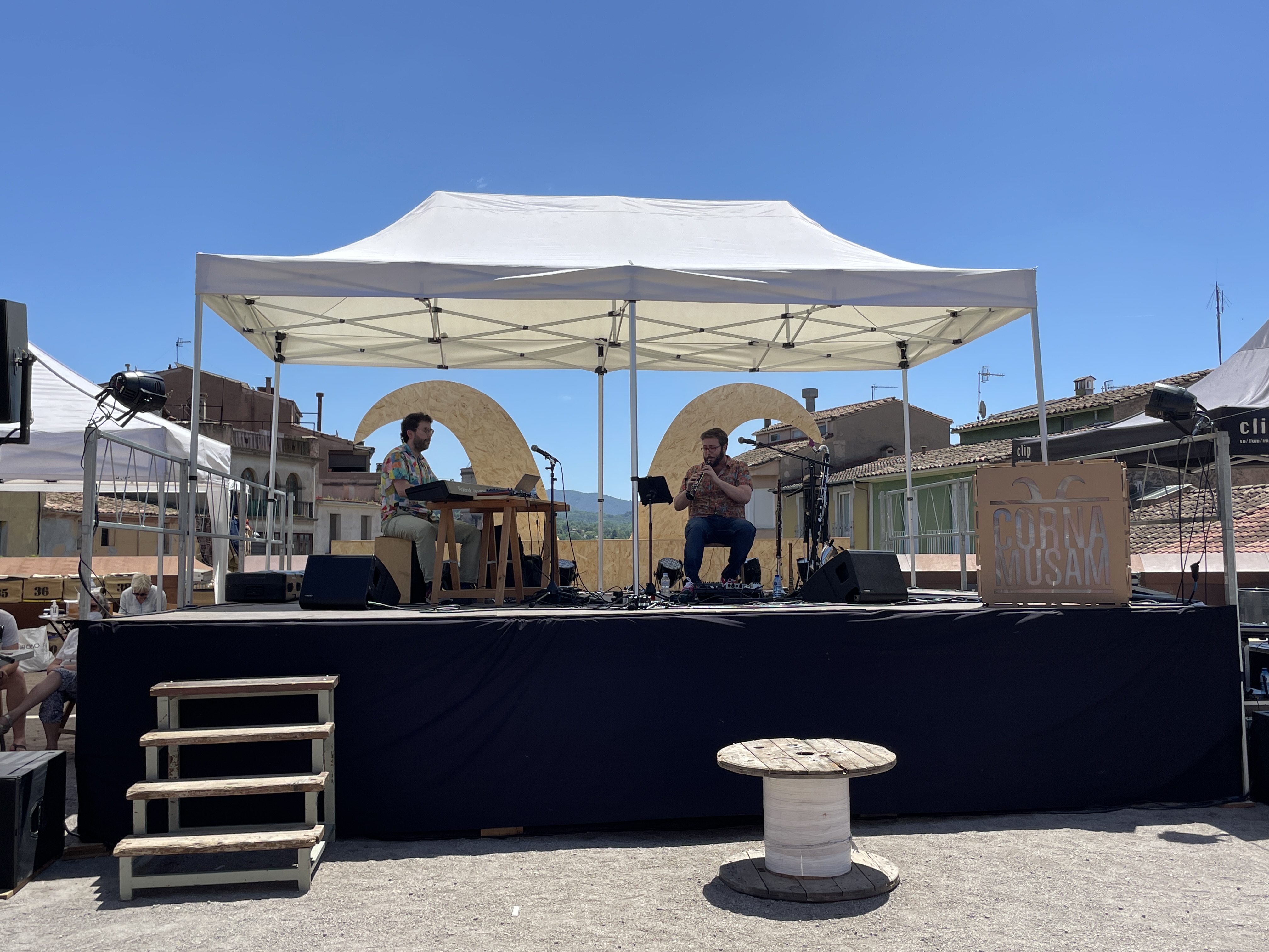 La plaça del Puig del Roser va ser l'espai principal del Cornamusam i durant tot el dia va acollir música, gastroteques, jocs de fusta, lutiers i una fira d’artesania. Desenes d'amants de la música popular s'hi van aplegar dissabte al migdia, malgrat la calor, per presenciar el concert-vermut, a càrrec de Manu Sabaté i Carles Marigó.