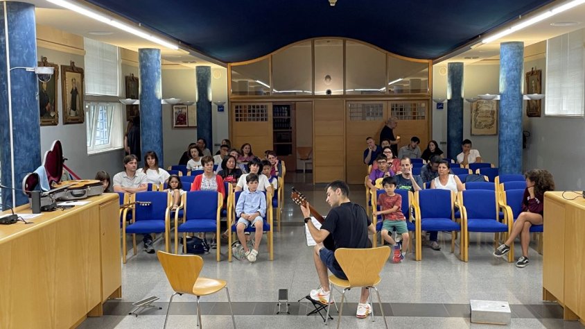 La Sala de Plens de l'Ajuntament d'Olot va aparcar debats, propostes i ordenances per un dia per relaxar-se i acollir música. Instruments de vent, de percussió i de corda, com les guitarres que veiem en imatges, van desplegar-se per diferents punts de la ciutat per oferir les audicions de final de curs de l'Escola de Música d'Olot.