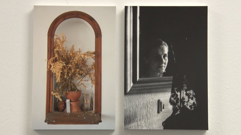 Joan Puigdemont, organitzador de la Biennal Olot Fotografia: Tipologies tenim moltes, des de la que preval el concepte com a part prioritària de l’obra fins al que dona prioritat a l’obra com a peça final, com a peça de museu. Per exemple, avall tenim peces que estan fetes amb processos pigmentaris antics, cada peça és una obra d’art i en canvi, tenim aquí davant, a l’Hospici, a la Rocío Bueno, que són peces quan mires l’exposició en si, veus el concepte que porta, veus la idea que vol transmetre l’autor. També hi ha les imatges dels guanyadors de la beca, el que varen fer va ser un diàleg visual quan un enviava una imatge, l’altre responia amb una altra imatge que li portaven al cap sobre temes quan ells estaven fent la catequesis.