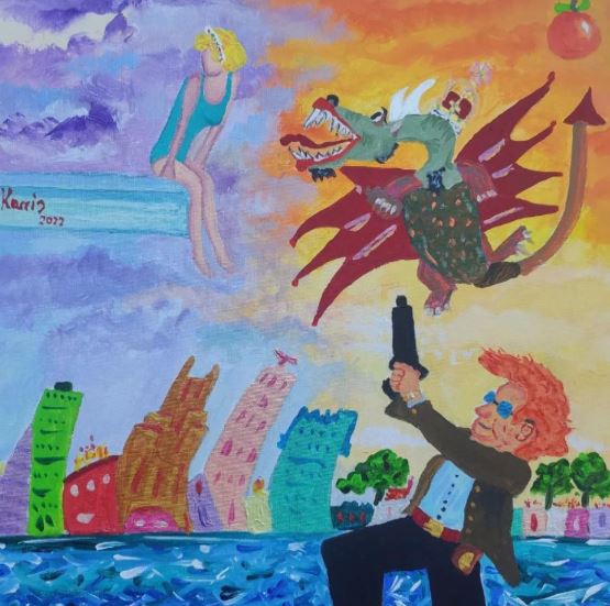 Aquest cop ‘Karris’ ha dut, de nou, el surrealisme a l’extrem, combinant la commemoració dels 25 anys de la mort de Diana de Gal·les amb altres personatges i figures, com per exemple el drac del Carme: "Hi ha la Diana de Gales asseguda i m’he permès posar-hi, també, el drac del Carme, d'Olot. Llavors hi ha un skyline de Miami beach. I llavors, en honor a la meva mare, al cel sigui, hi he posat un altre personatge: Horatio, de CSI."