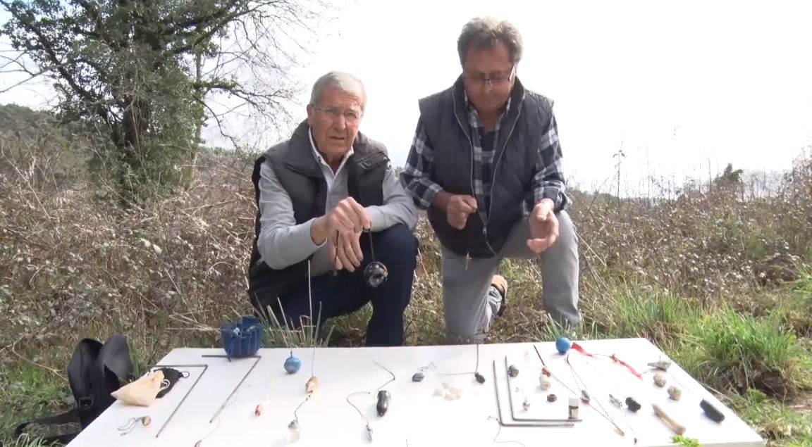 Expliquen que per trobar aigua a través d’aquest mètode requereix molta concentració i connectar amb el terra. Per buscar aigua utilitzen diversos objectes; d’una banda, dues varetes: en el moment que se’ls hi creuen per si soles, significa que estan sobre una veta o deu d’aigua, i en el moment que se separen vol dir que estan lluny. D’altra banda, utilitzen el pèndol, tal com explica en Lluís Sarsanedas: “Per nosaltres el pèndol, que gira pel sentit de les broques de rellotge vol dir que és bo, si ens va a l’esquerra, és un camp negatiu i no hi ha aigua”.