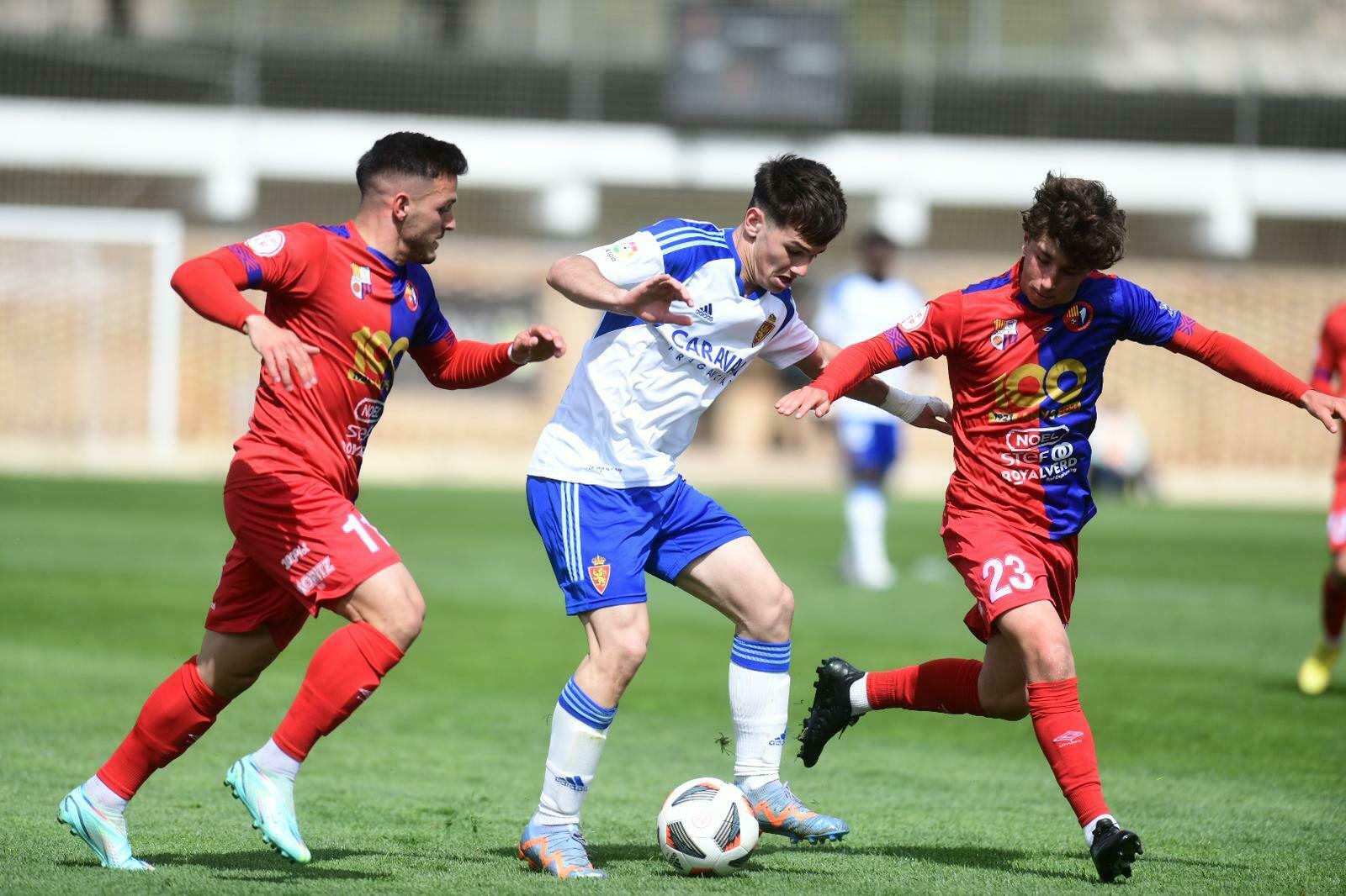 A la primera meitat, l’Olot ja ho ha intentat amb una passada de la mort de Valverde que s’ha enverinat i ha tret Rebollo al primer pal i amb una bona centrada d’Aimar que Cerdà no ha sabut rematar. El problema és que ha deixat viu el Deportivo Aragón i el filial del Saragossa li ha fet pagar en el primer quart d’hora de la segona, quan Rastrojo s’ha inventat un golàs amb un gran xut des del vèrtex de l’àrea. Setmanes enrere l’1-0 hauria enfonsat moralment l’equip, però avui el conjunt de Blázquez ha demostrat que ha après la lliçó i ha estat capaç d’aixecar-se. Deu minuts després del gol local, ha arribat la resposta visitant: Èric Vilanova ha assistit a Ernest Forgas a dins l’àrea i, davant del porter, el davanter ha fet l’1-1.