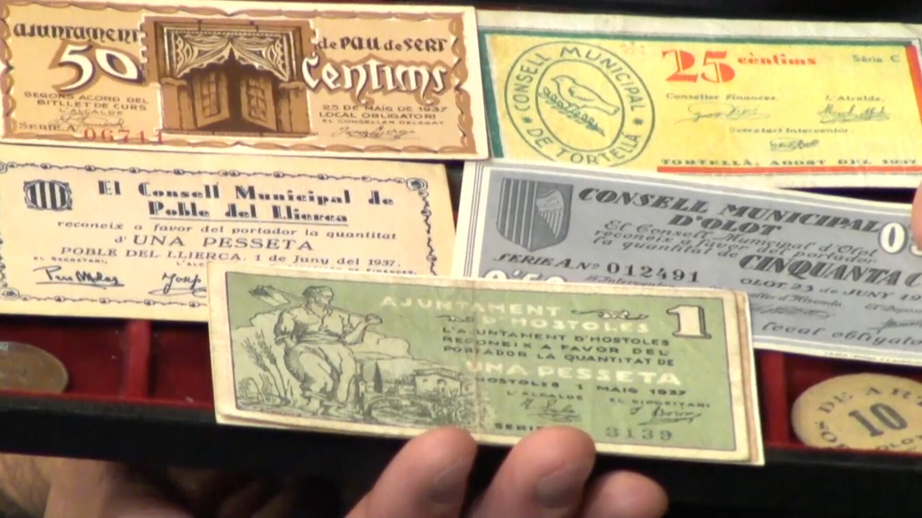 Segons expliquen, van ser tres els grans moments de creació i emissió de moneda a la Garrotxa: primer en l’època comtal, amb forta presència a Besalú. Més tard durant la Guerra dels Segadors, i també especialment durant la Guerra Civil. Una gran part de totes aquestes monedes eren moneda de nova creació amb ús comercial, fetes per cooperatives. També incloïa bitllets. Pel que fa als materials, eren ben diversos, “de níquel o de llautó, materials pobres” admet Gelis. “Quan parlem d’emissió de moneda de plata és ben bé per pagar als soldats que van a combatre al front. De fet, els mateixos pobles feien monedes de coure ben bé per circular de manera local” afegeix Plantalech.
