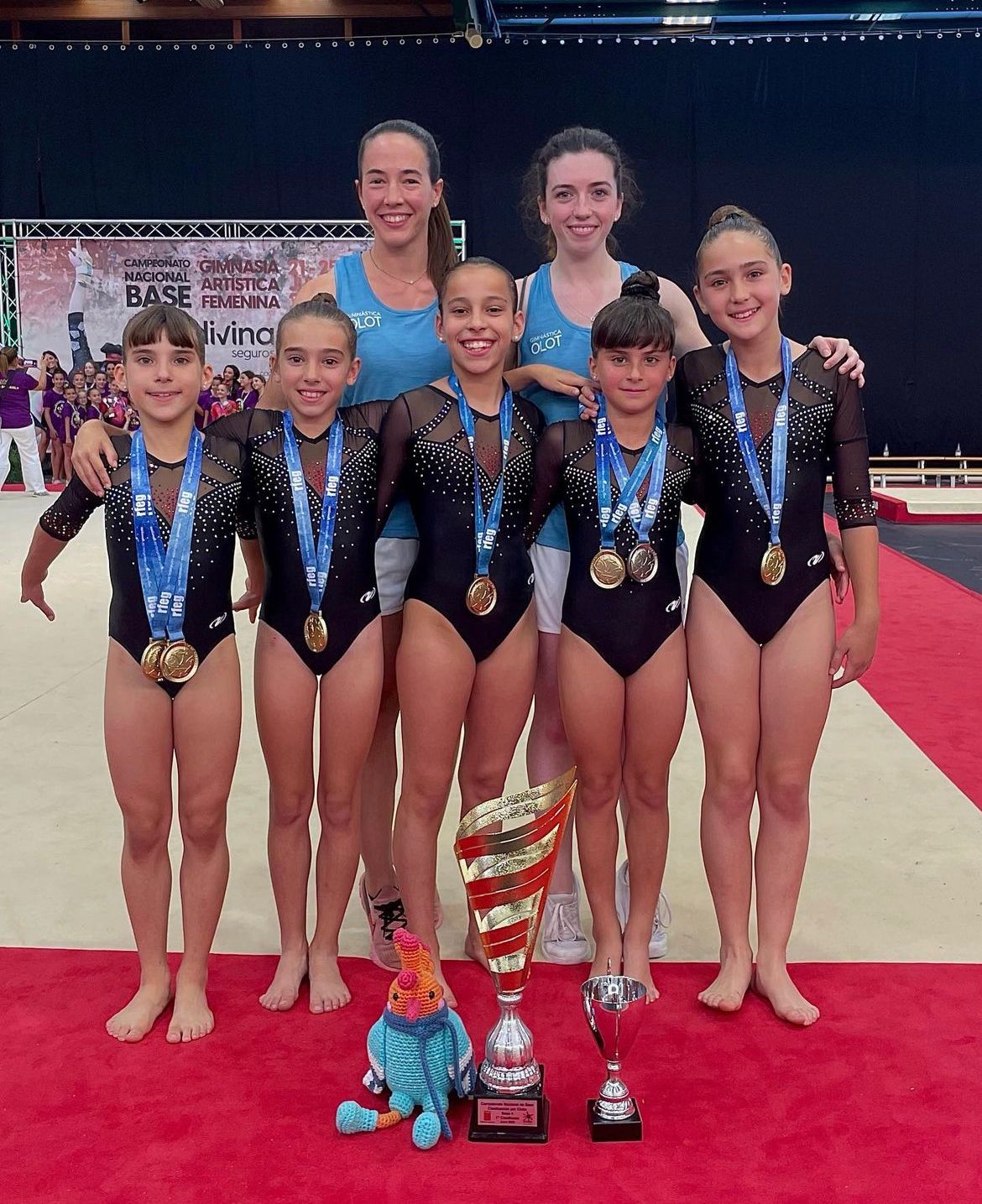 Punt final a la segona i millor temporada de l’Associació Esportiva Gimnàstica Olot. L’equip de base 4 format per Gala Hernández, Blanca Puigmal, Bruna Masias, Paula Roca i Laia Bosch va brillar i es va proclamar campió d’Espanya de la seva categoria a Lanzarote. En una entrevista a La Banqueta d’Olot Televisió, l’entrenadora de l’associació, Emma Gleeson, ha destacat que l’objectiu era gaudir la competició i, sobretot, treballar en equip.