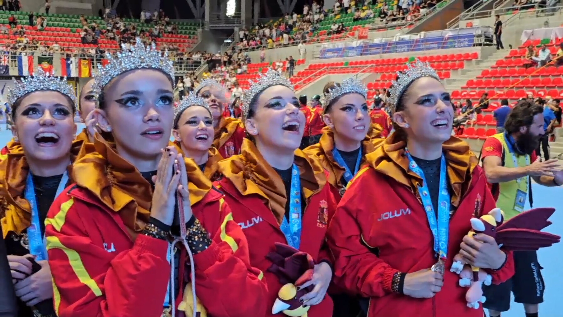 Automàticament s’ha desfermat l’alegria a la sala on conjunt olotí esperava el desenllaç del mundial. Una exposició de felicitat com a resultat d’una temporada complicada pel conjunt olotí. Però l’esforç com equip per superar totes les adversitats ha estat més fort que la por al fracàs: “No m’ho crec és increible. Estem molt contentes i agraïdes. Ho hem suat, ens ho hem treballat i estem aquí perquè ens ho hem treballat. Veies el públic que ens animava, ho estàvem gaudint. Vam passar-ho malament, però aquesta coreografia mereixia un final així”, explica Magalí Feu, capitana grup xou gran CPA Olot.