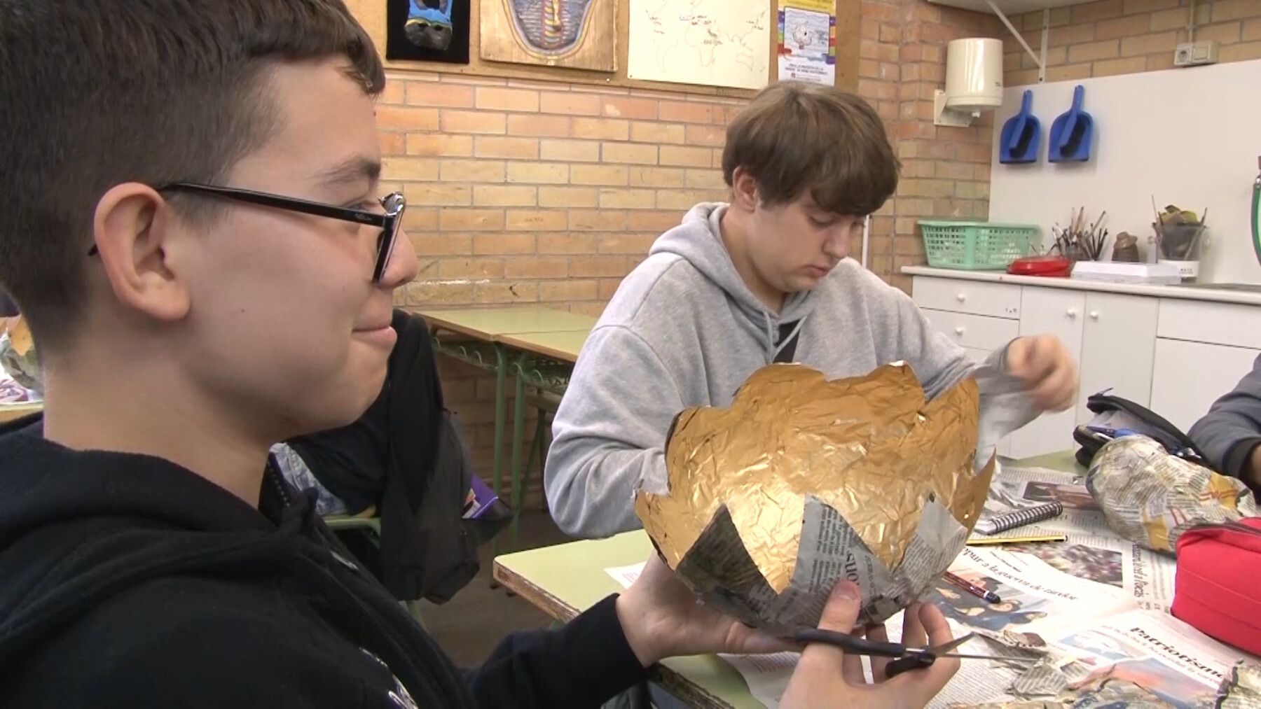 I no ens movem d’allà perquè els alumnes dels instituts de la comarca i l’Escola d’Adults, n’han estat treballant també en una. L’han anomenat ‘Els ous d’or de les oques del Parc Nou’. És una instal·lació de gran format on uns quants milers d’ous, fets amb paper maixé i pintats de color daurat a l’interior com si fos una làmpada, generen una nova atmosfera al parc.
